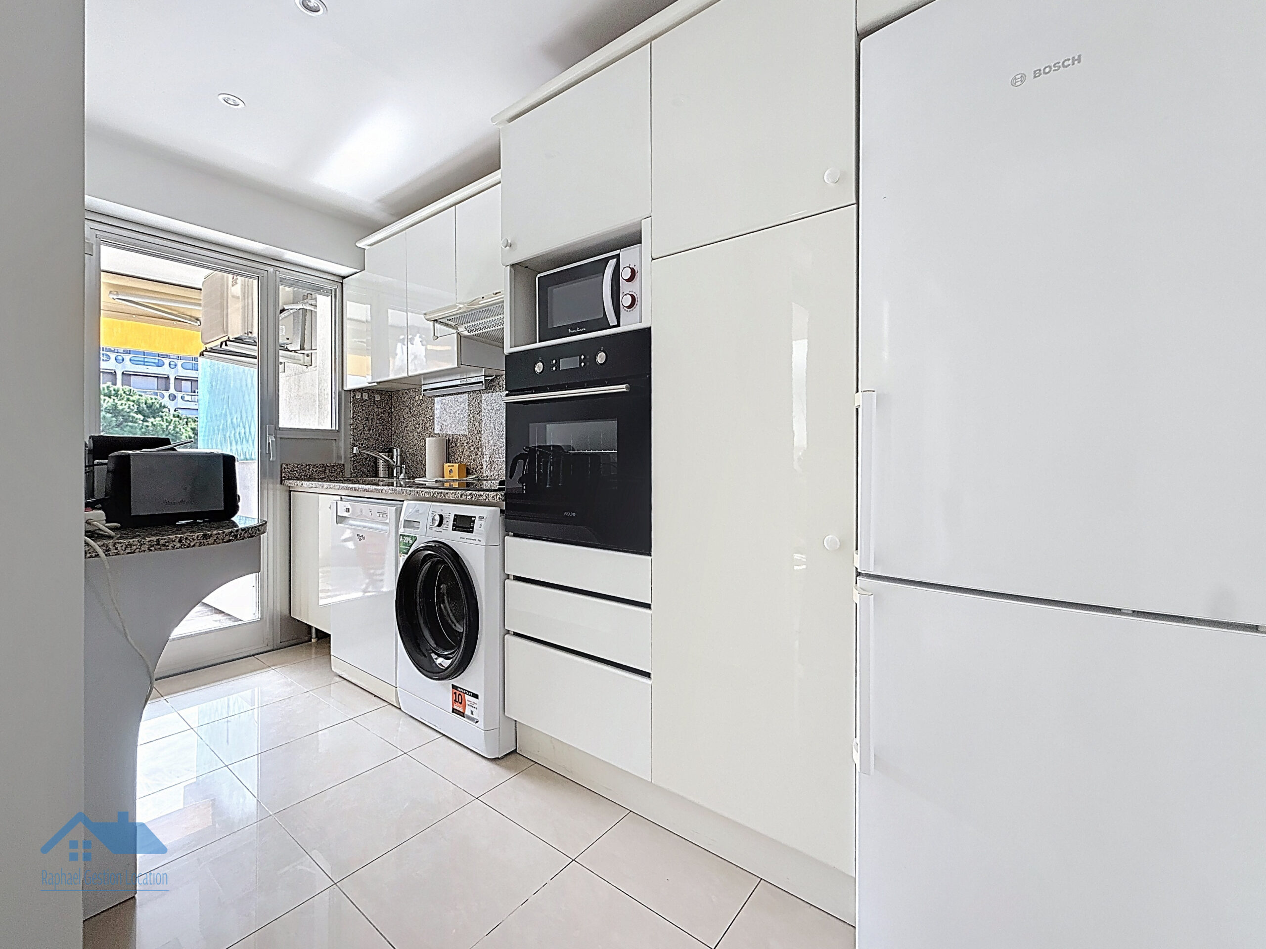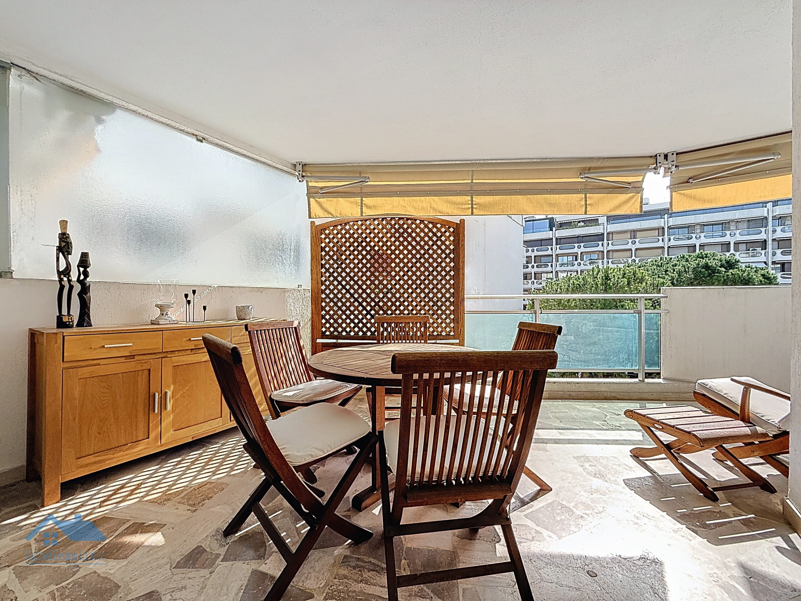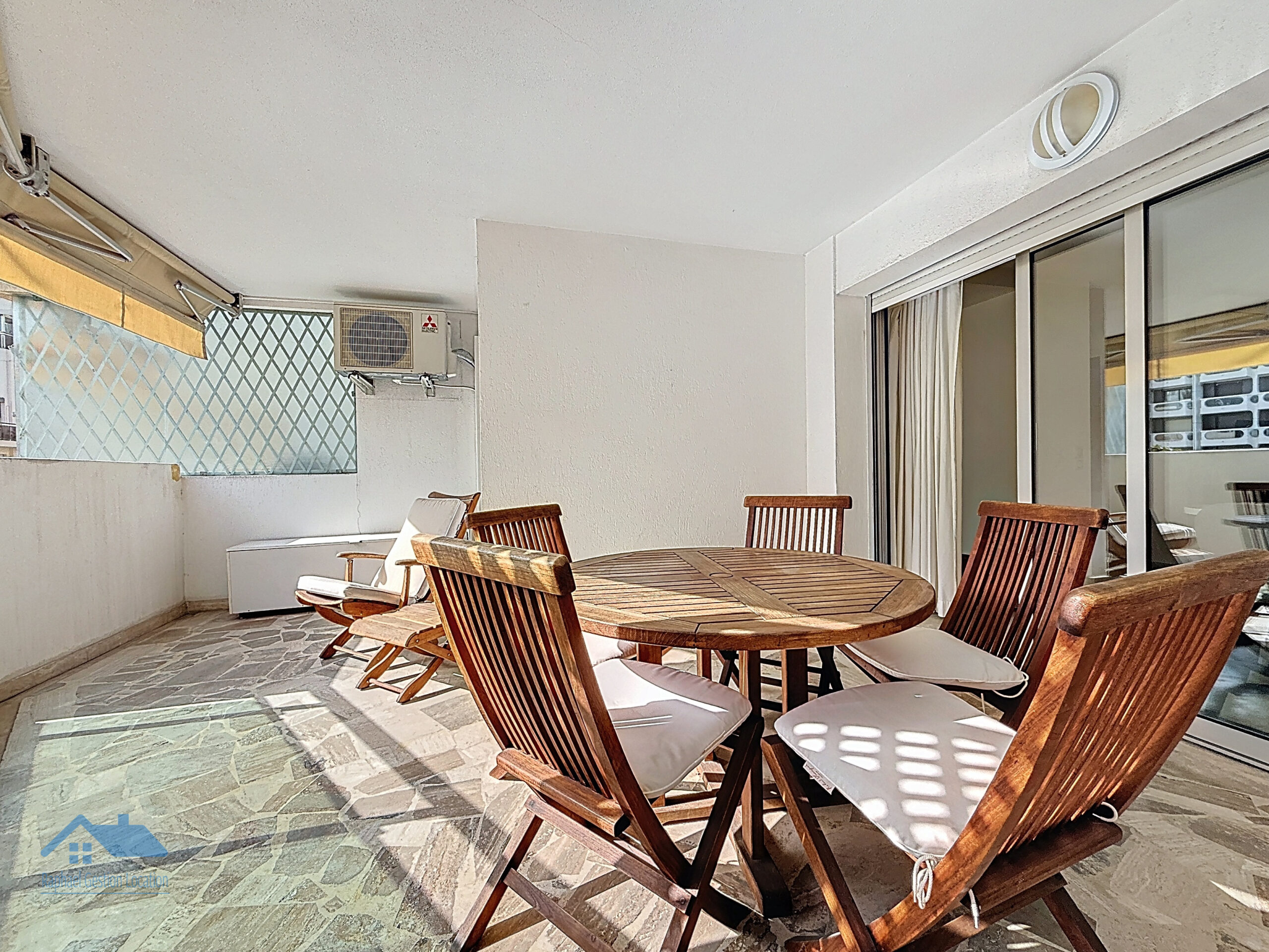 Large terrasse Sud-Est donnant sur un parc paysagé dans une très belle résidence entre les palaces Marriott et Carlton à 8 mn à pied du Palais des Festivals.